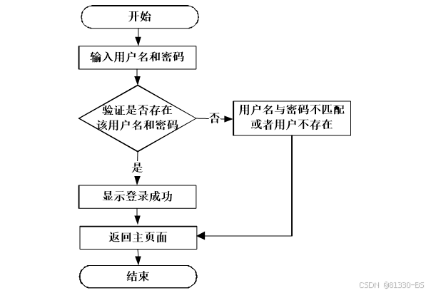 | 事件流 | (1)用户在登录页面输入用户名和密码 (2)系统检测用户输入的用户名和密码是否正确 (3)用户名和密码正确的话,显示登录成功并返回主页面 |