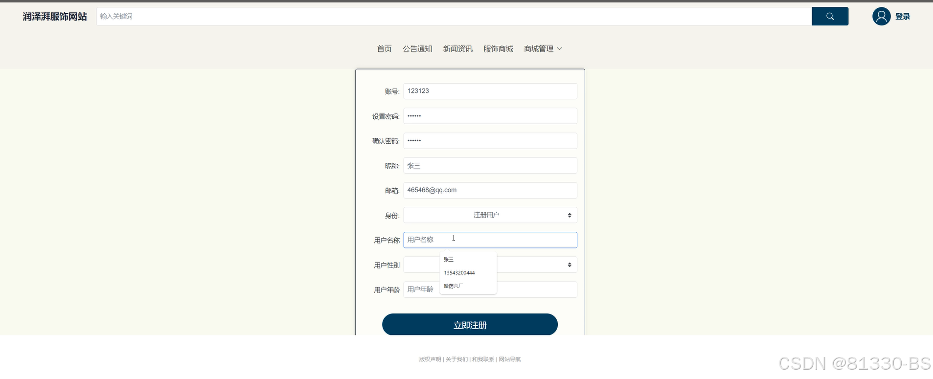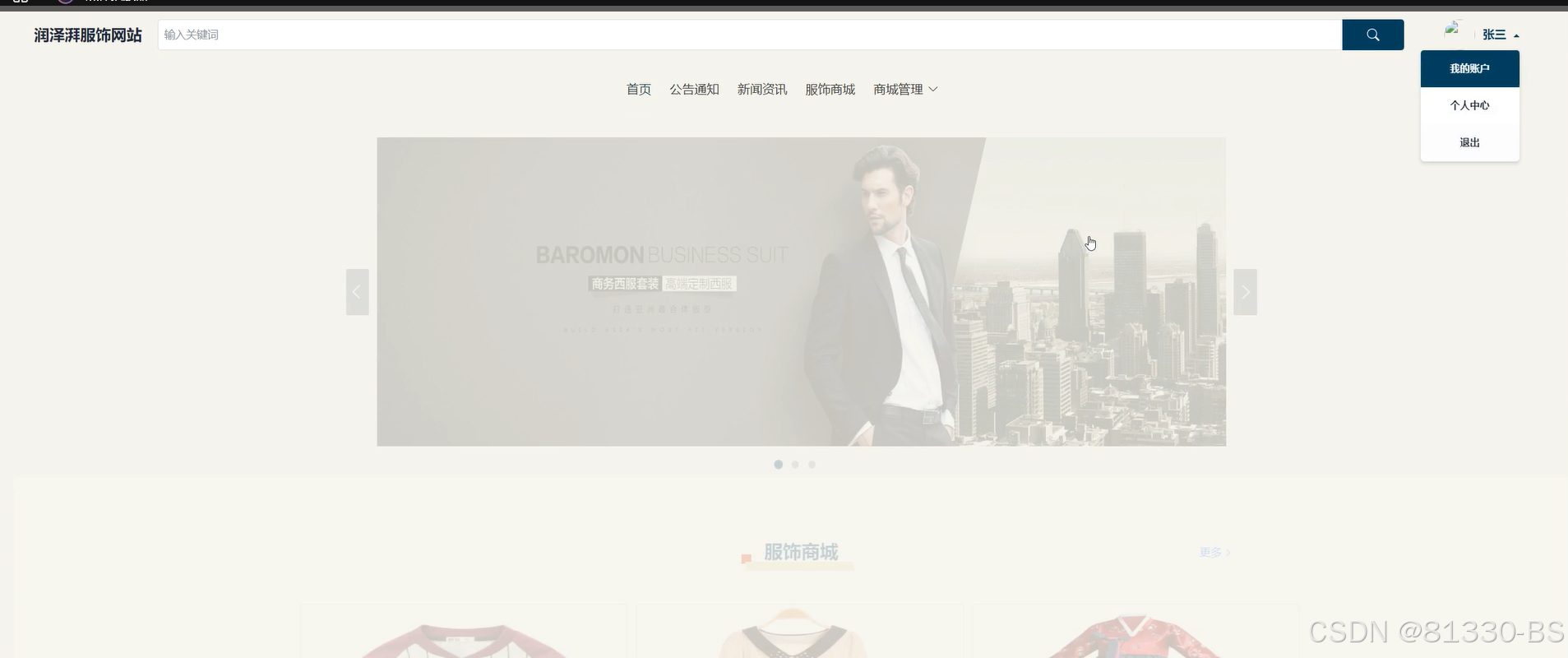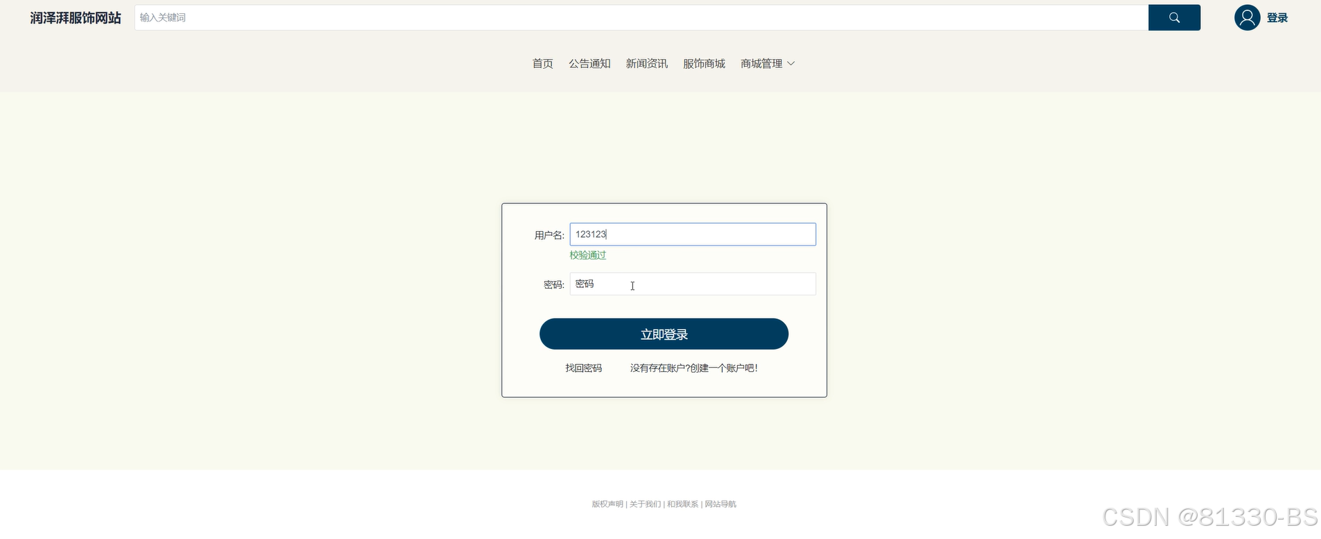 本PHP润泽湃服饰网站是一个通过浏览器自主查询、交流的平台,用户想要参与进来,必须有账号和密码,登录后方可交流,管理员则实现对用户的管控,如下图: