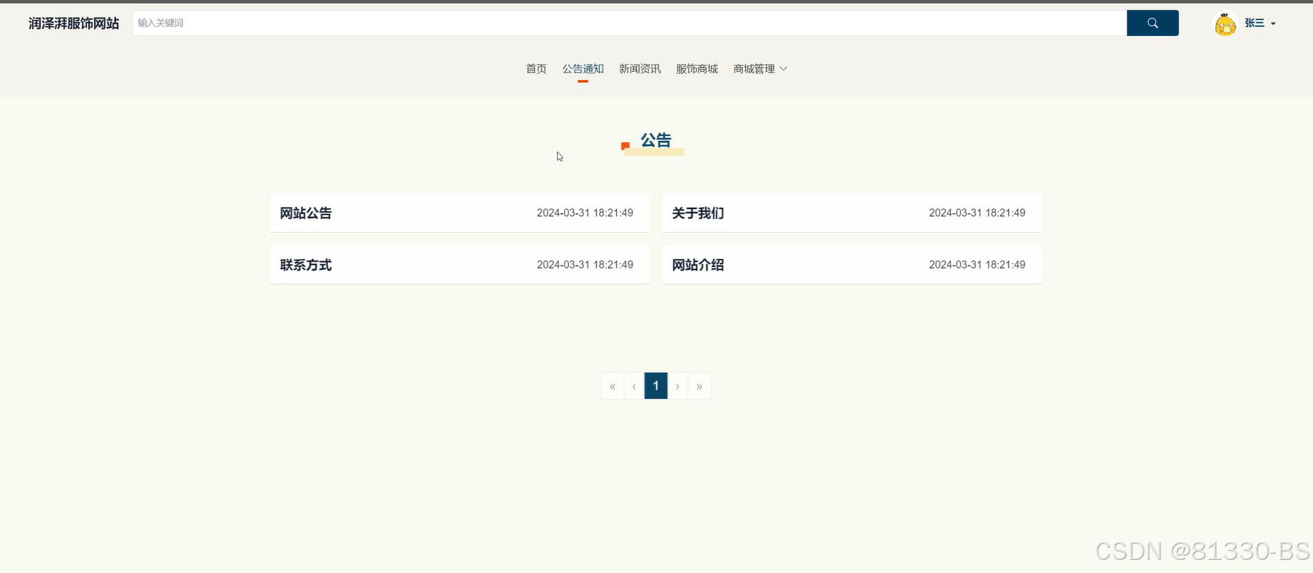 (5)公告通知管理:管理员对公告通知列表进行管理。