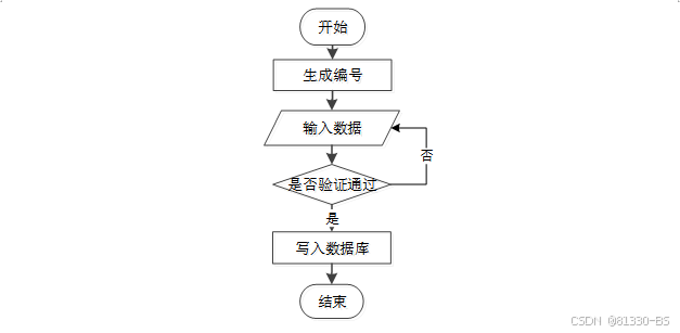用户成功登入系统后就能够实现增加数据的操作,增加数据的编号由系统生成,用户不能随意填写,除了编号以外,其他增加信息用户自己填写,填写后的信息经过系统验证,验证通过后即可完成数据新增,数据新增的流程图如下图2-3所示。