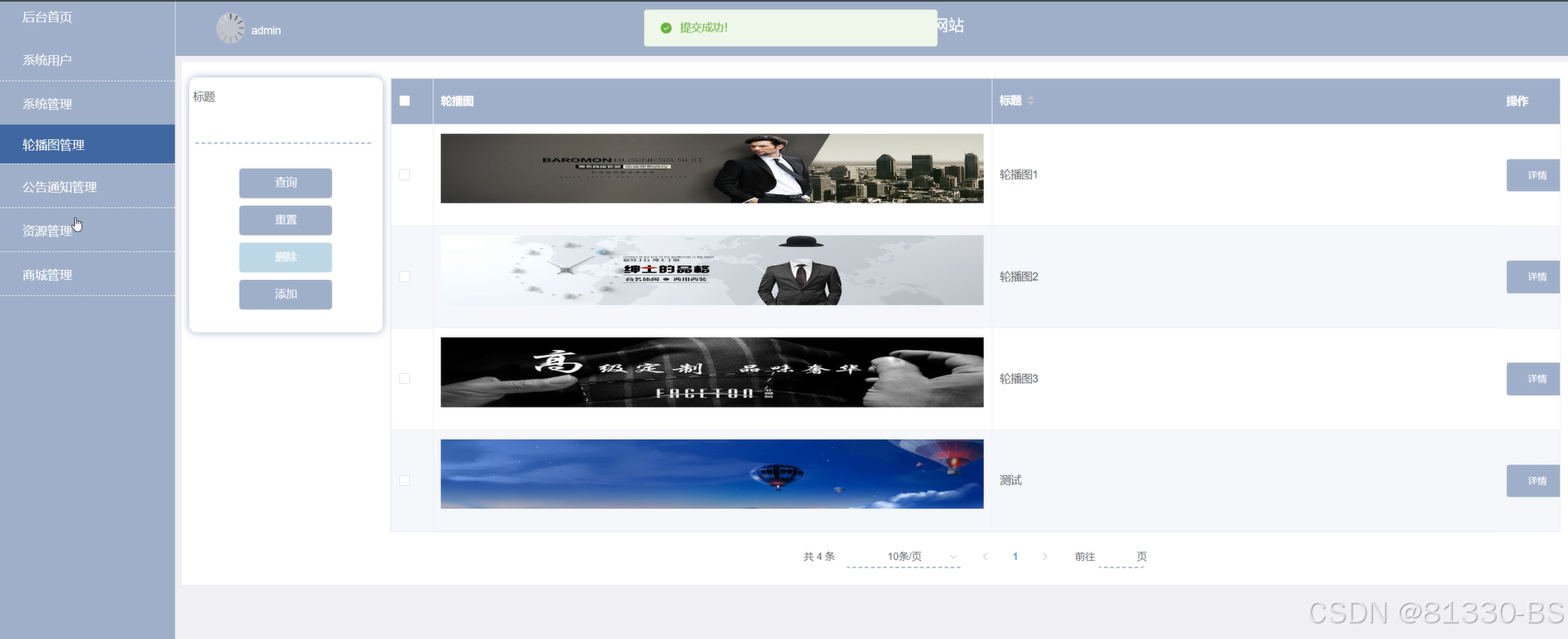 管理员对轮播图进行管理。界面如下图4-7所示。