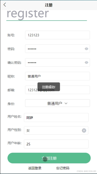 | 将现有数据修改成正确的数据 | 提示“修改成功”,并显示所有数据 | 预期结果 |