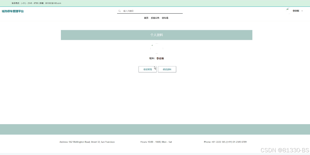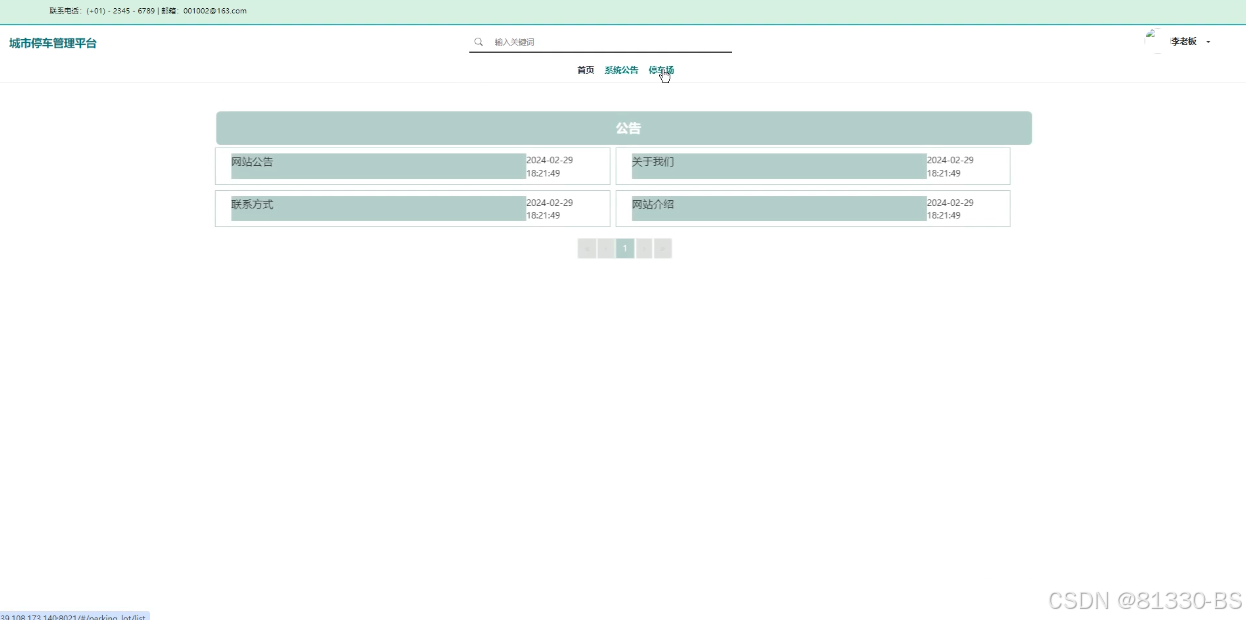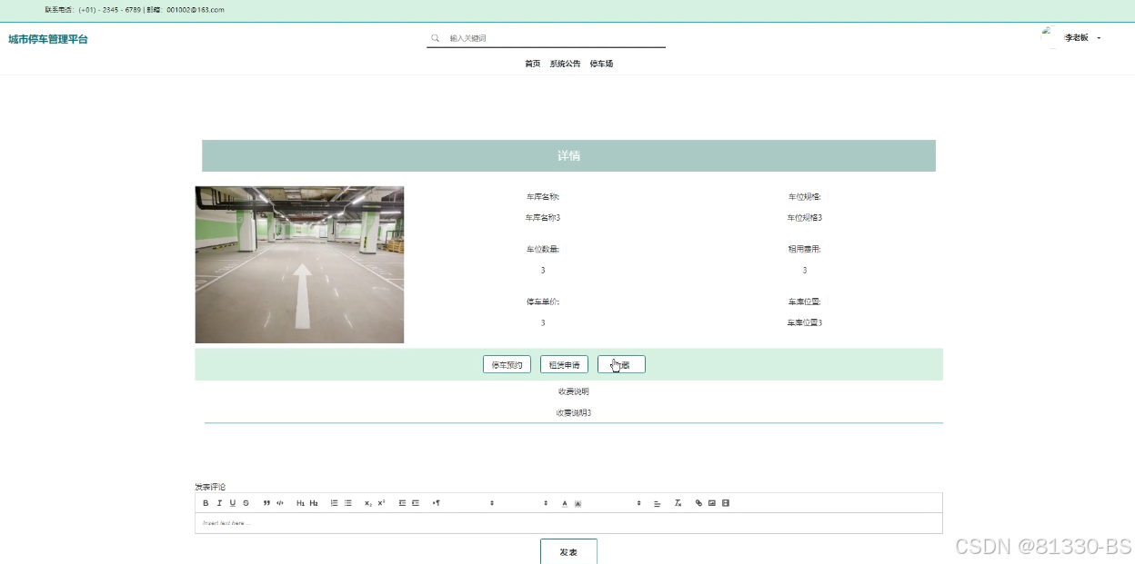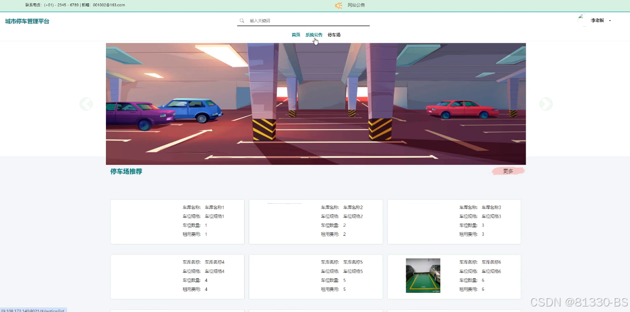 该系统以SpringBoot和Vue作为前后端开发框架、结合MySQL和Java等开发技术,实现了添加、修改、查看、删除系统数据。本系统采取组件化的方式对系统进行拆分,并对数据库中各个表的增删查改、表与表之间的约束关系进行分析与设计,最终实现符合用户需求功能的商业级应用。该系统实现了城市停车管理平台内部的各种工作流程计算机管理化,其中包括管理员的系统用户、停车场管理、停车预约管理、入场信息管理、出场信息管理、租赁申请管理、系统管理、系统公告管理等功能。