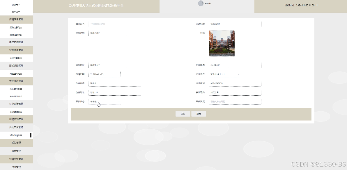 活动申请管理:对活动申请信息进行处理,审核招聘活动。