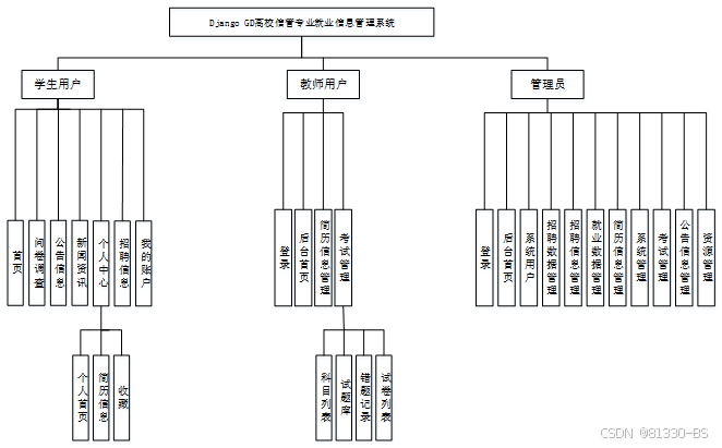 高校信管专业就业信息管理系统我划分为了学生用户模块、教师用户模块和管理员模块这三大部分。