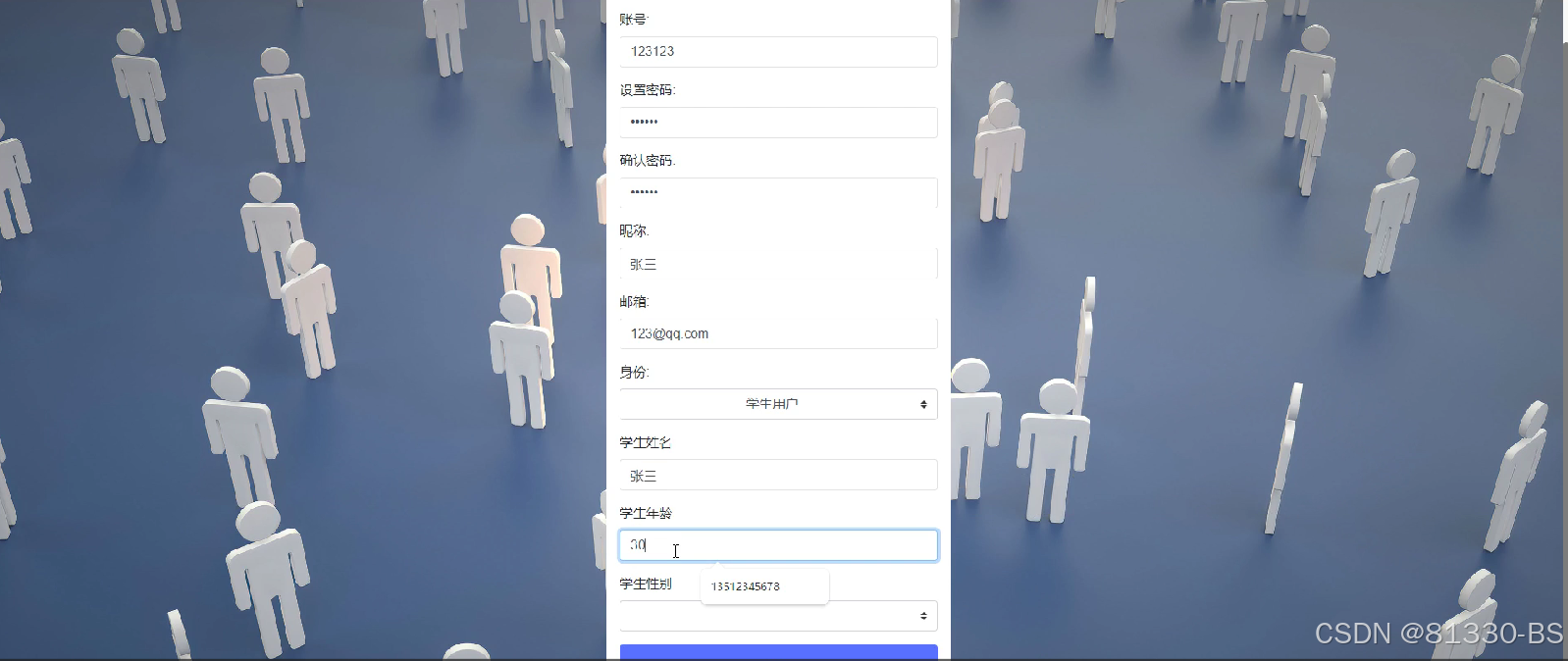 学生用户管理模块: