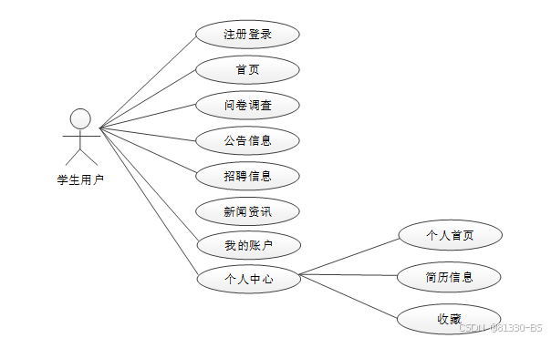 (1)注册登录:游客可以随时进入到系统中,对系统中的信息浏览,但是想要实现查询招聘信息、新闻资讯等操作,就必须有这个系统的账号,如果没有账号的话,可以学生用户进行相关的操作,同时用户还可以通过“我的账号”这个按钮对个人信息以及操作的信息进行管控。