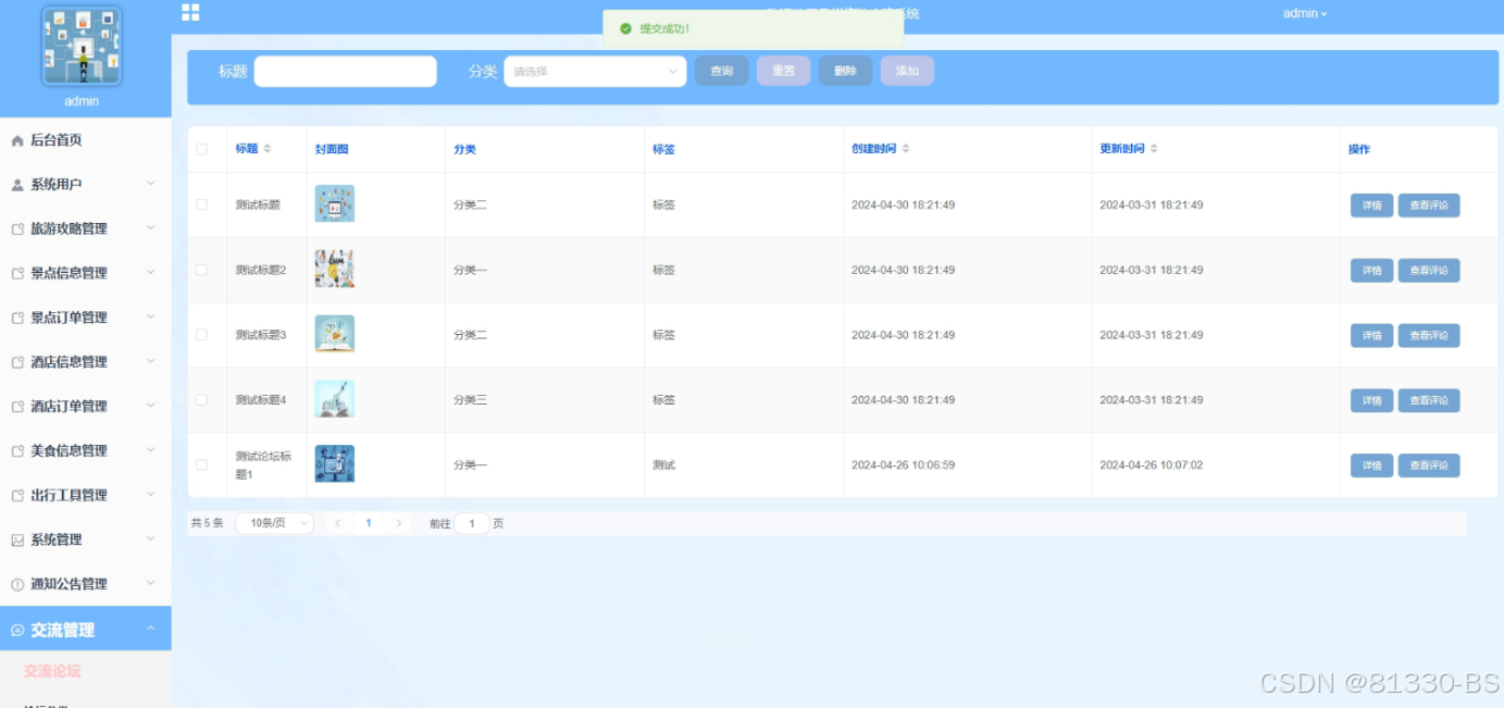 交流管理:管理员可以管理交流论坛,包括论坛的分类、帖子的发布和编辑等,以促进用户之间的交流和互动。界面如下图所示。