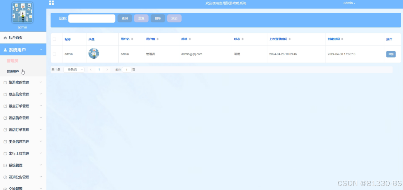 系统用户:系统用户分为管理员和普通用户两种角色。管理员拥有更高的权限,可以执行更多的操作,而普通用户则只能访问其权限范围内的功能。界面如下图所示。