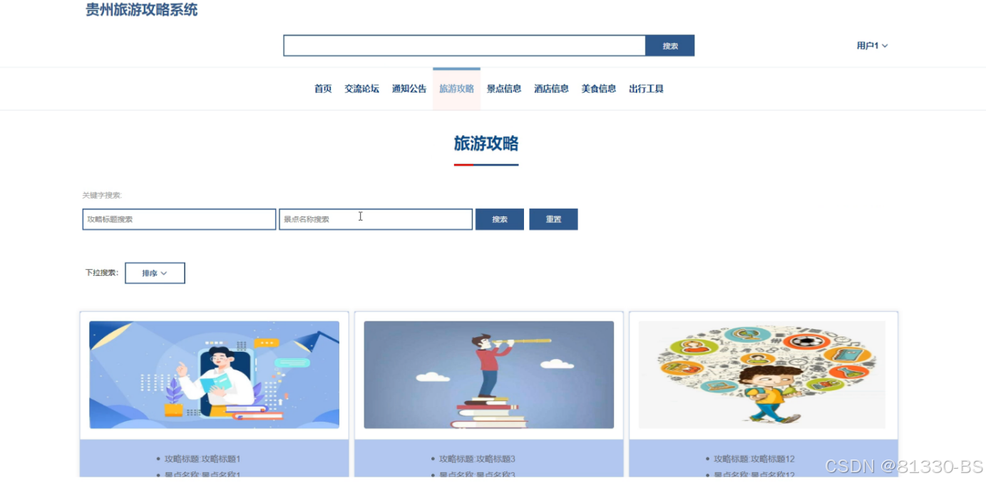 (2)首页:首页是用户进入网站后首先看到的页面,我们特设了旅游攻略板块,旨在为用户提供丰富多样的旅行建议和信息,帮助他们更好地规划旅程。