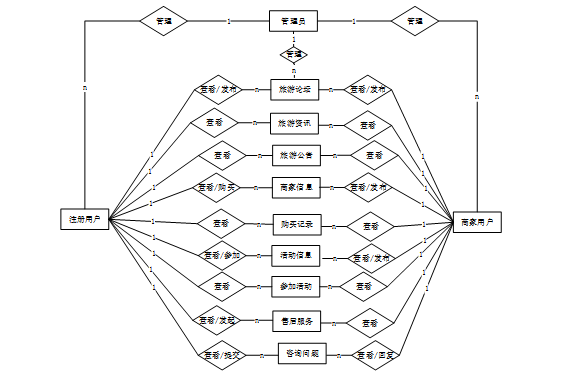 下面是整个自驾游资源共享平台中主要的数据库表总E-R实体关系图。