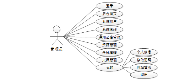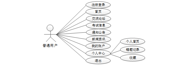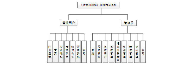 按照《计算机网络》在线考试系统的角色,主要包括普通用户模块和管理员这两大模块。各模块功能如下: