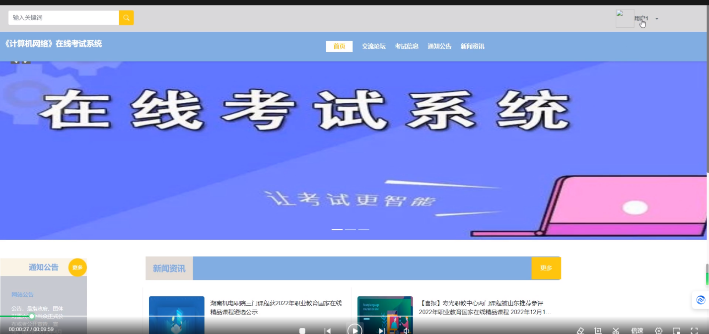 (2)首页:首页界面是用户访问系统的入口页面,用户可以查看首页展示的轮播图、通知公告、新闻资讯等信息。