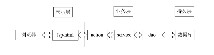 页面发送请求给控制器,控制器调用业务层处理逻辑,逻辑层向持久层发送请求,持久层与数据库交互,后将结果返回给业务层,业务层将处理逻辑发送给控制器,控制器再调用视图展现数据。