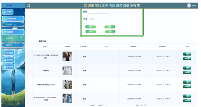 The development of community dry cleaning shop service WeChat mini program utilizes existing mature technology reference, uses source code as a template, analyzes the functional adjustment and combines it with the actual needs of community dry cleaning shop service WeChat mini program management, and discusses the use of WeChat mini program management based on community dry cleaning shop service.
