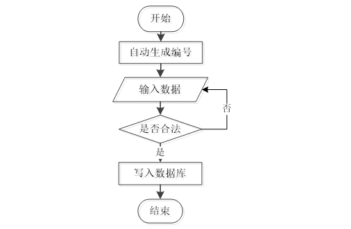 用户成功登入系统后就能够实现增加数据的操作,增加数据的编号是特定的,系统生成,用户不能随意填写,除了编号以外,其他增加信息用户自己填写,填写后的信息经过系统验证,验证合法通过就显示增加数据成功了,相反的话,就没有增加成功,图2-1显示的就是在增加数据时的流程。