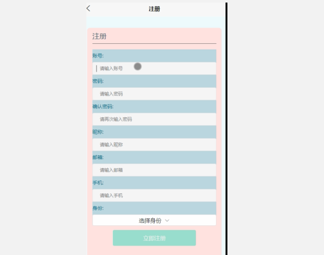 在注册页面可以填写用户名、密码、姓名、性别、头像、手机、邮箱等信息,进行注册如图5.8所示。