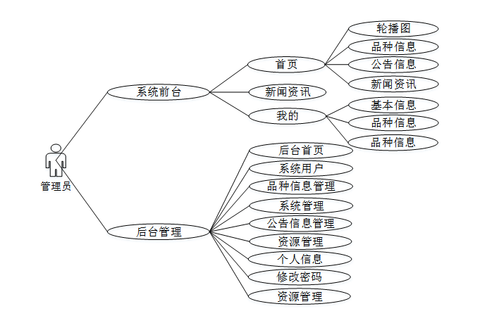 系功能模块分成了管理员及普通用户两个模块,每个模块登录进去对应相应的功能,具体的功能模块图如图3.1所示。
