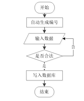 用户成功登入系统后就能够实现增加数据的操作,增加数据的编号是特定的,系统生成,用户不能随意填写,除了编号以外,其他增加信息用户自己填写,填写后的信息经过系统验证,验证合法通过就显示增加数据成功了,相反的话,就没有增加成功,图2-1显示的就是在增加数据时的流程。