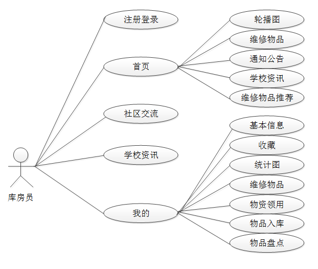 - 我的:可对基本信息、收藏、统计图、维修物品、物资领用、物品入库、物品盘点等信息进行管控。