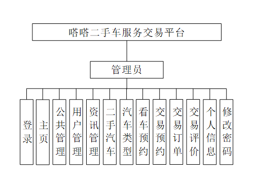 本网上嗒嗒二手车服务交易平台根据用户需求主要分为三个模块:买家用户,卖家用户,管理员。