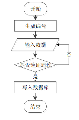 用户成功登入系统后就能够实现增加数据的操作,增加数据的编号由系统生成,用户不能随意填写,除了编号以外,其他增加信息用户自己填写,填写后的信息经过系统验证,验证通过后即可完成数据新增,数据新增的流程图如下图2-1所示。