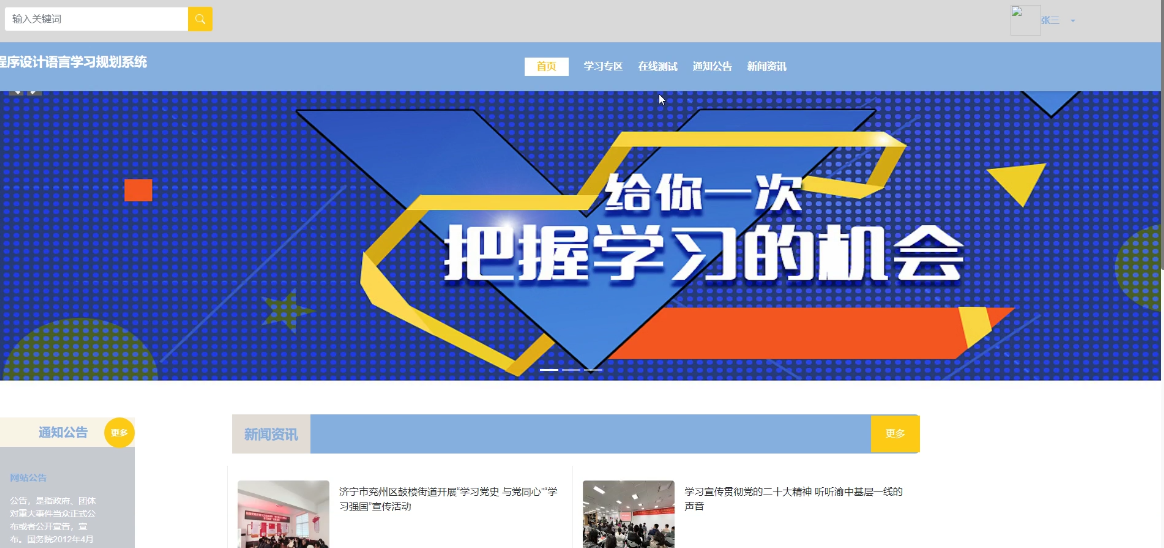 - 首页:可查看轮播图、通知公告、新闻资讯等信息和使用系统其他功能。