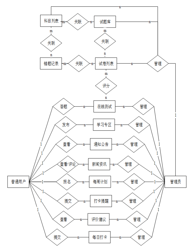 借助先进的系统,E-R图使其他用户可以快速轻松地了解系统的功能以及他们之间的关系。根据程序设计语言学习规划系统分析结果,整个程序设计语言学习规划系统包括以下各个单元:管理员、普通用户、社区论坛、人才招聘、学习专区、信息服务、志愿活动、问卷调查、干部风采、留言反馈等。