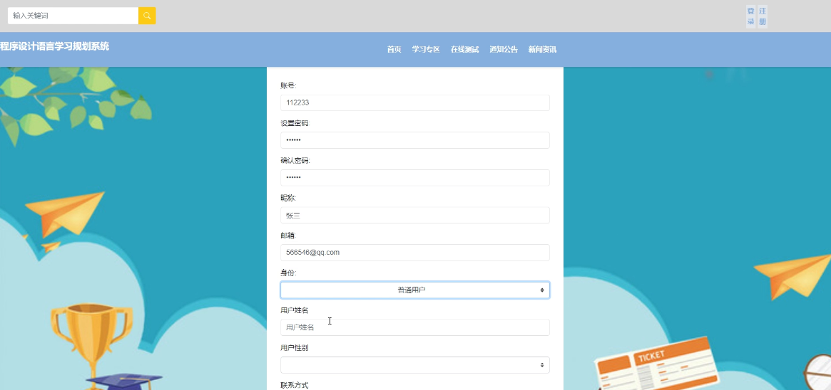 (2)本系统主要针对程序设计语言学习规划系统需求进行设计开发,突出较强的针对性。