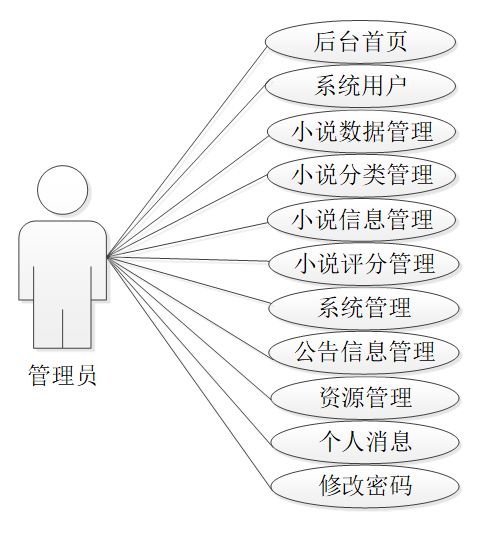 管理员是维护整个基于大数据技术的网络小说智能分析及可视化中所有数据信息的。管理员角色用例如图2-2所示。