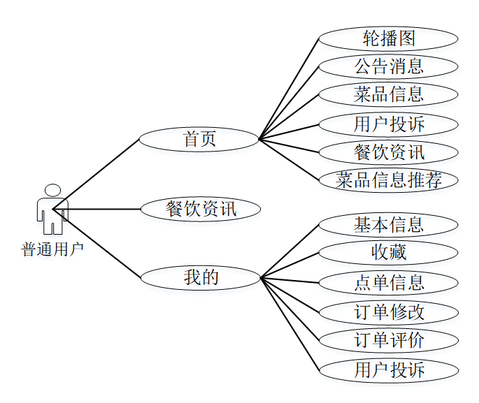 餐厅点餐系统中普通用户角色用例图如图2.1所示: