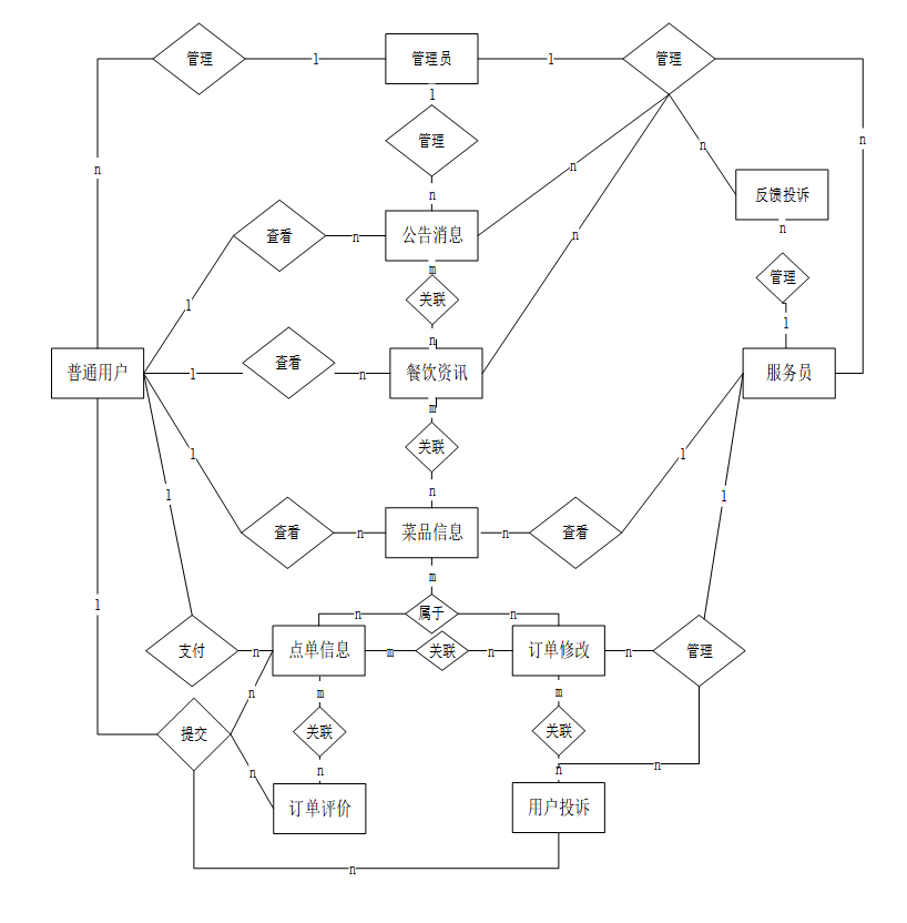下面是整个餐厅点餐系统中主要的数据库表总E-R实体关系图。