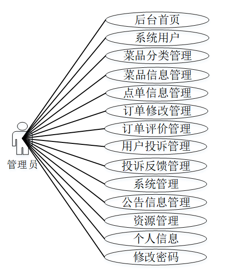 餐厅点餐系统中管理员用例图如图2.2所示: