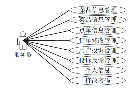 餐厅点餐系统中服务员用例图如图2.2所示: