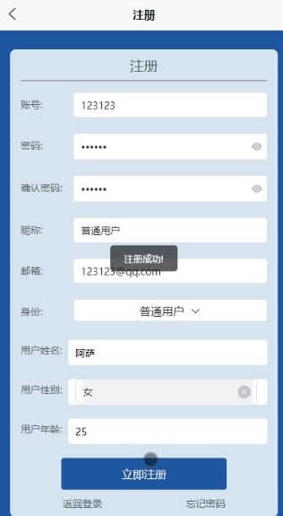 - 注册登录:游客可以通过注册成为系统用户,使用账号密码可进行登录,使用系统功能。