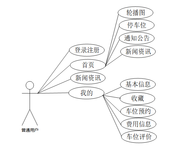 车位预约系统中普通用户角色用例图如图2.1所示: