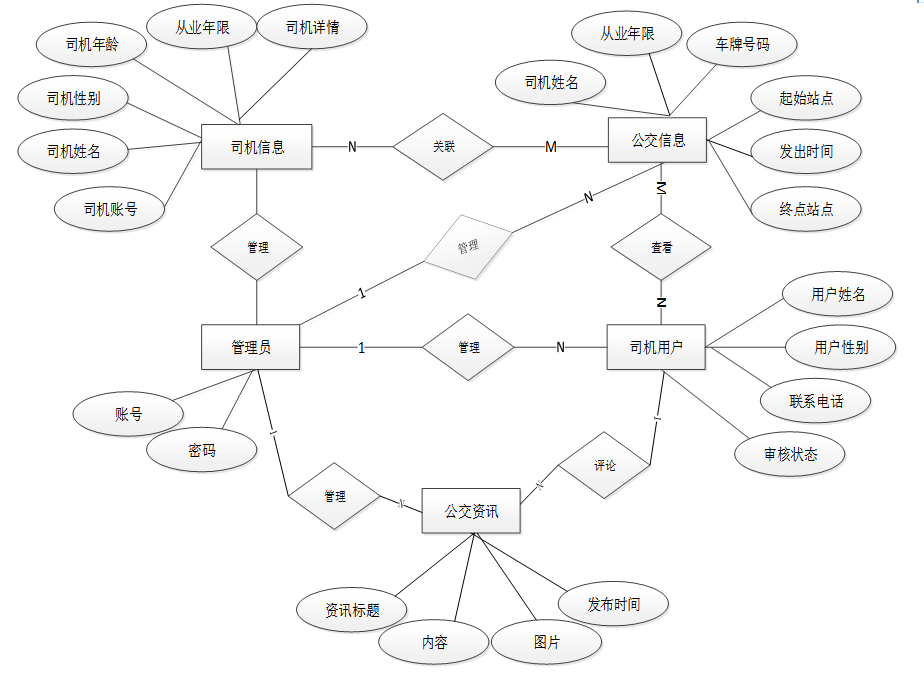 下面是整个公交司机管理系统中主要的数据库表总E-R实体关系图。