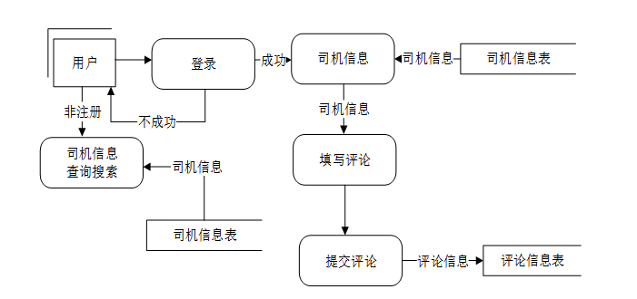 公交司机管理系统主要的目的就是实现对司机信息的在线浏览、评论,图2-1就是系统的数据流图。