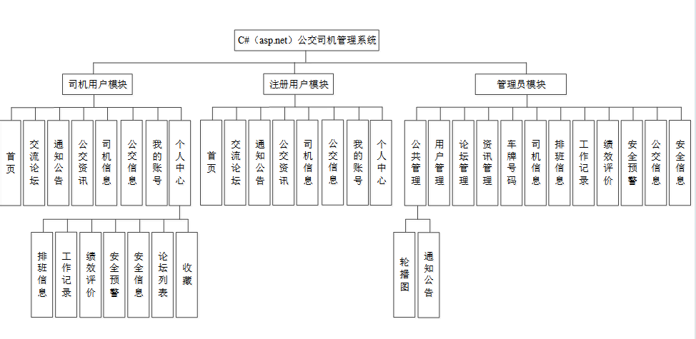公交司机管理系统是中需要存储不少公交信息,其模块功能结构,具体的结构图如下: