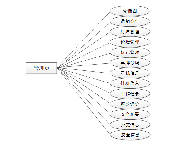 通过2.3功能的分析,得出了本公交司机管理系统的用例图: