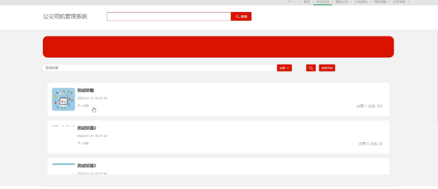 当访客点击公交司机管理系统中导航栏上的“交流论坛”后将会进入到该“交流论坛”列表的界面,然后选择想要看的交流论坛,点击进入到详细界面,在详细界面可以收藏+赞+评论等操作。也可以点击发布内容发布新的交流帖子。交流论坛界面如下图4-4所示。