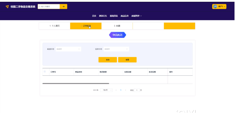 订单配送:用户可以查看已购买的商品信息的订单状态,填写配送地址等,跟踪和管理订单的配送过程。界面如下图所示。