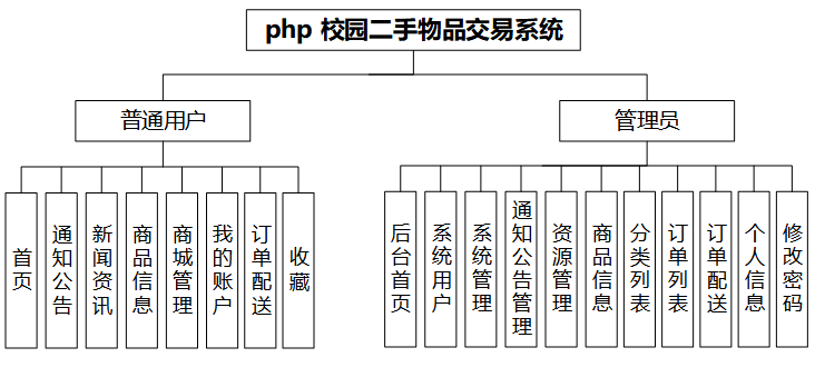 校园二手物品交易系统旨在为学生提供便捷、安全和高效的商品信息买卖服务。该平台具备首页展示、通知公告、新闻资讯、商品信息、商城管理、订单配送以及收藏等功能。同时,管理员拥有后台首页、系统用户、系统管理、通知公告管理、资源管理和商城管理等功能。具体如下: