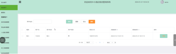 - 入住登记管理:查看和处理客户的入住登记列表,及时关注用户预定房间后的入住情况。