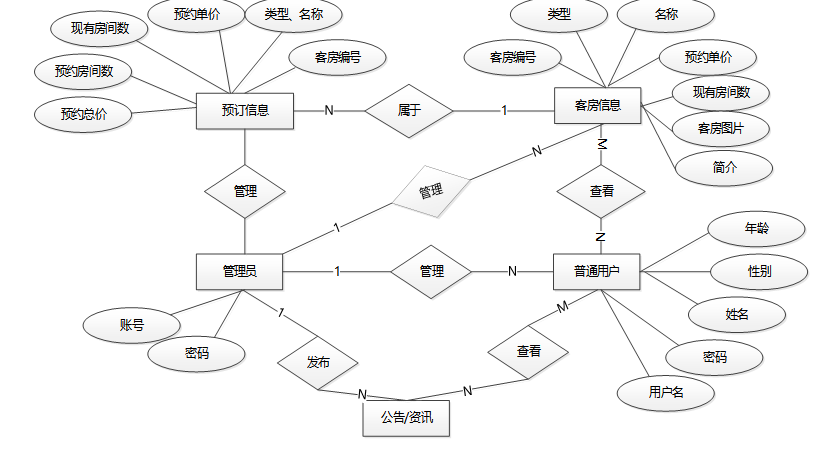 图3.2 中小酒店客房管理系统总E-R关系图