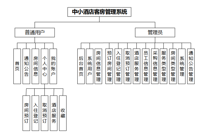 图3.1 中小酒店客房管理系统功能模块图