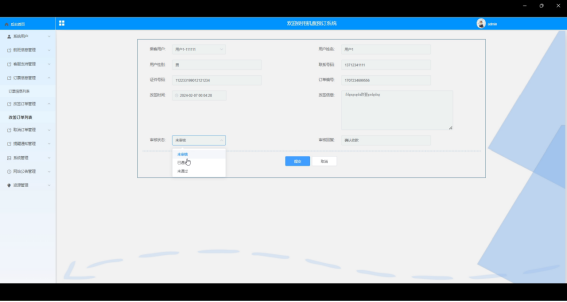 管理员查看用户提交的改签请求、审核修改信息、确认变更、更新订单。管理员登录系统后,审批用户的改签申请,验证修改信息准确性,确认变更后更新订单信息。改签审核确保修改请求的合规性和准确性,提高系统订单处理的准确性和及时性,保障用户订单变更的顺利进行,提升用户体验和满意度。界面如下图所示。