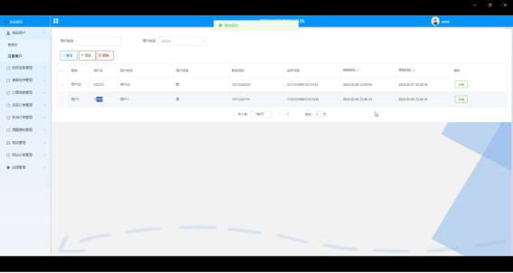 用户管理功能包括添加、编辑、删除用户信息、分配权限、重置密码等操作。管理员可以根据需要对用户信息进行管理,包括添加新用户、编辑用户信息、删除用户账号,以及分配不同权限和重置密码等操作。用户管理功能有助于维护系统安全和管理效率,确保用户信息的准确性和安全性。界面如下图所示。
