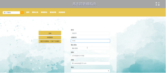 This article introduces a nursing home management system based on Spring Boot, which aims to provide comprehensive management and service functions, covering three roles: administrator, ordinary user, and management user. It also provides functions such as notification announcements, news information, message feedback, and hospital building information. The system adopts the Spring Boot framework as the backend, and implements permission management for different roles through identity authentication and authorization. Administrators can publish notifications, announcements, and news information, manage user permissions, and leave feedback; Ordinary users can view notification announcements and news information, and leave comments and feedback; In addition, the management user has the authority to manage the information of the courtyard.