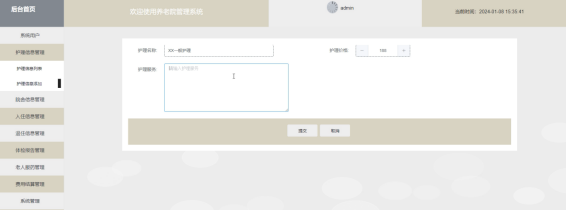 (2)护理信息管理:管理员可以查看护理信息列表,添加新的护理信息记录。